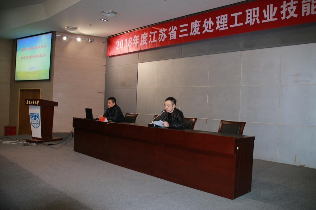 3月19日上午,由省环保厅主办、省环保厅宣教中心和tyc33455cc太阳成tyc33455cc联合承办的2018年度江苏省三废处理工职业技能培训在我校江浦校区逸夫图书馆一楼报告厅举行。环保厅宣教中心副主任庄新文,tyc33455cc太阳成tyc33455cc党总支书记马丽春,环保厅第三专员办、法规处、固管中心、土壤处、水处、大气处,tyc33455cc太阳成tyc33455cc等有关人员,以及来自江苏省各市县环保及相关企业单位共100多名代表参加本次培训开班仪式。
