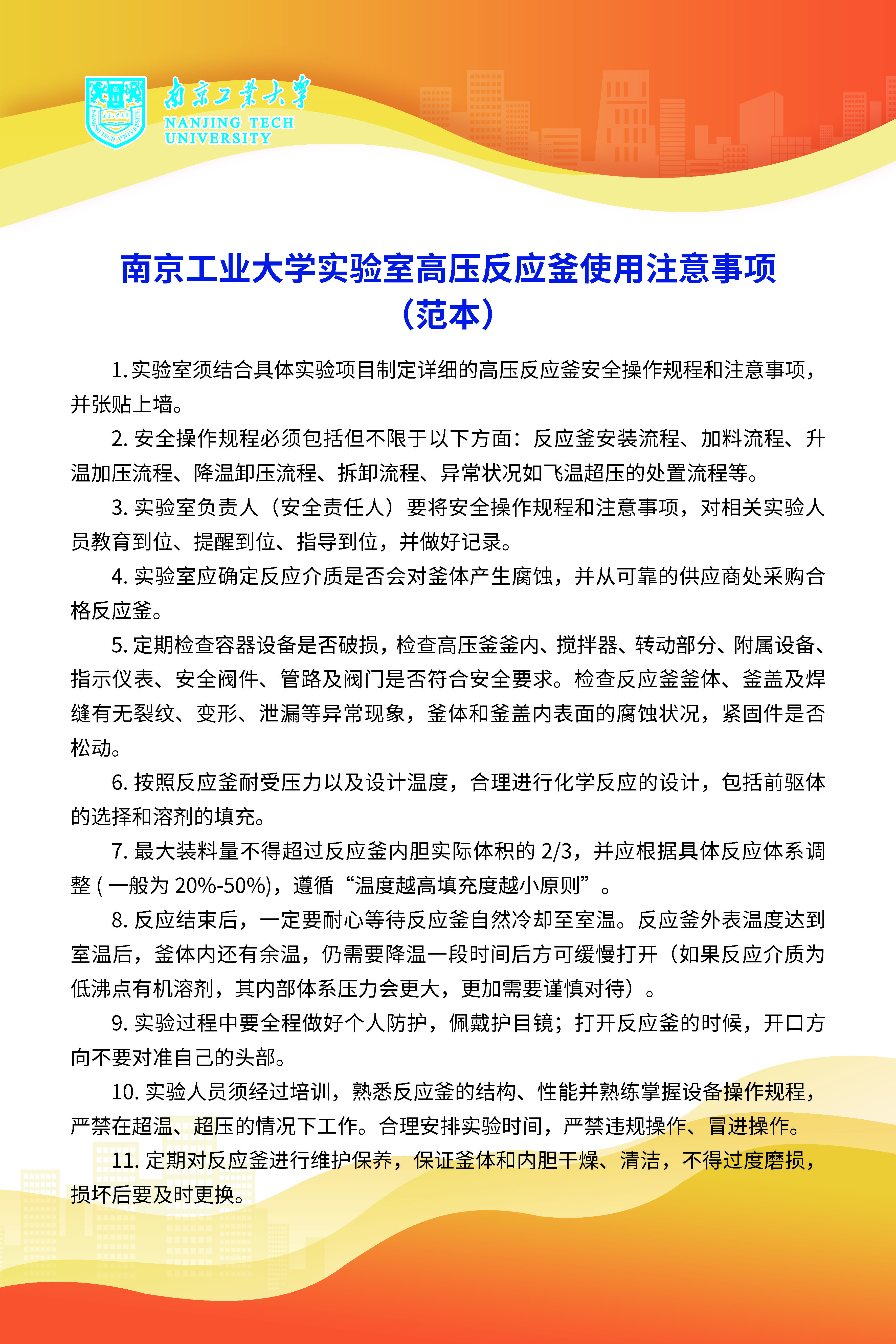 (范本)实验室高压反应釜、气瓶、危化品安全操作规程及使用注意事项