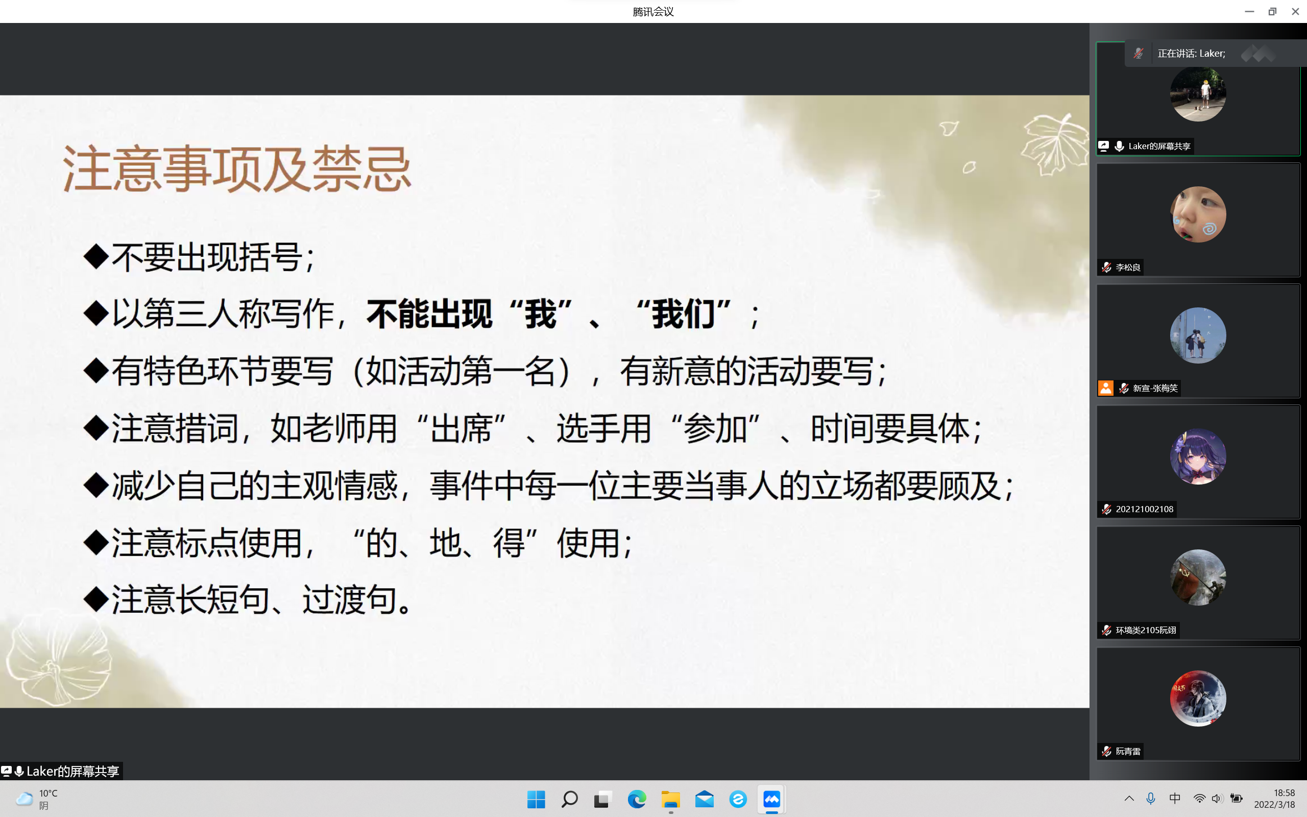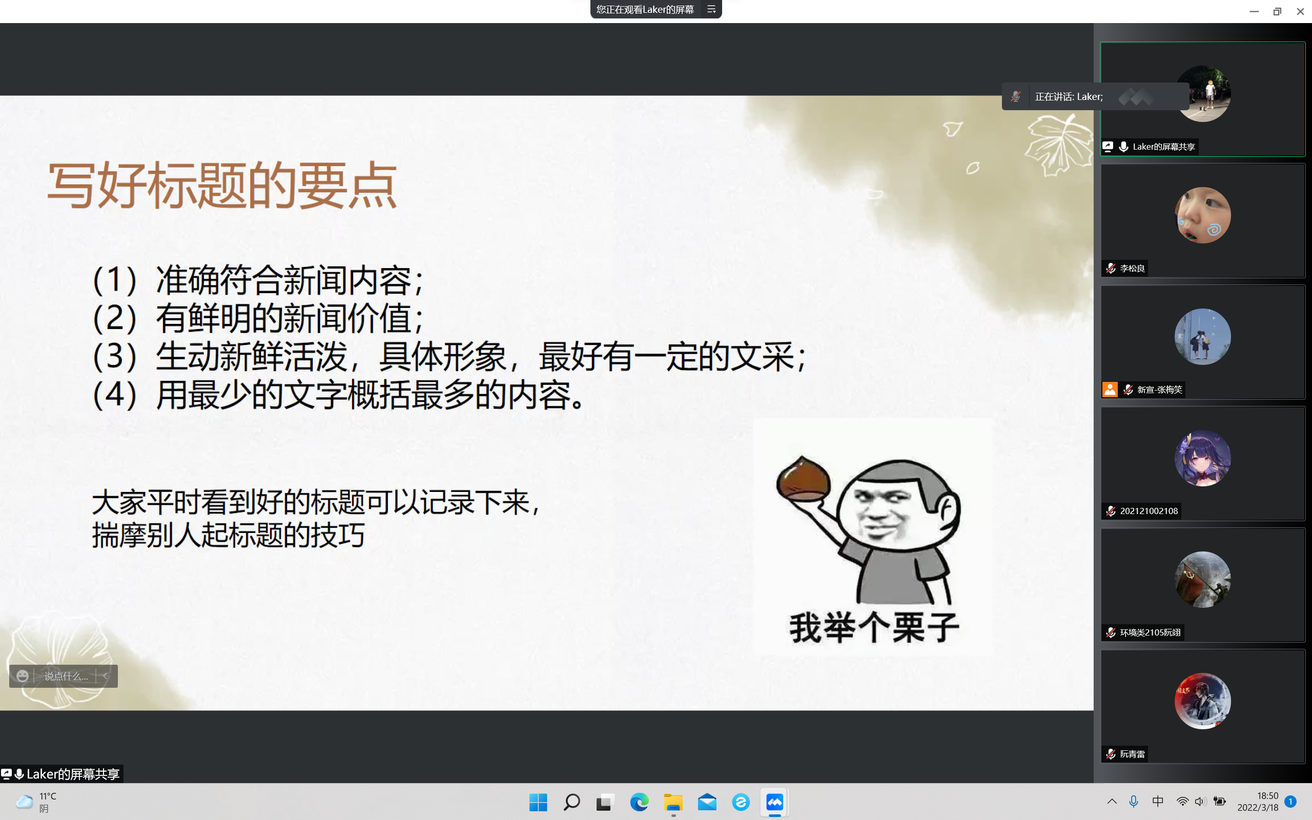 3月18日晚,太阳成tyc33455cc学生会通过腾讯会议开展校园类新闻稿写作培训活动,学院21级辅导员陈亚会老师受邀作为此次活动主讲人,全体学生会成员共同参与。