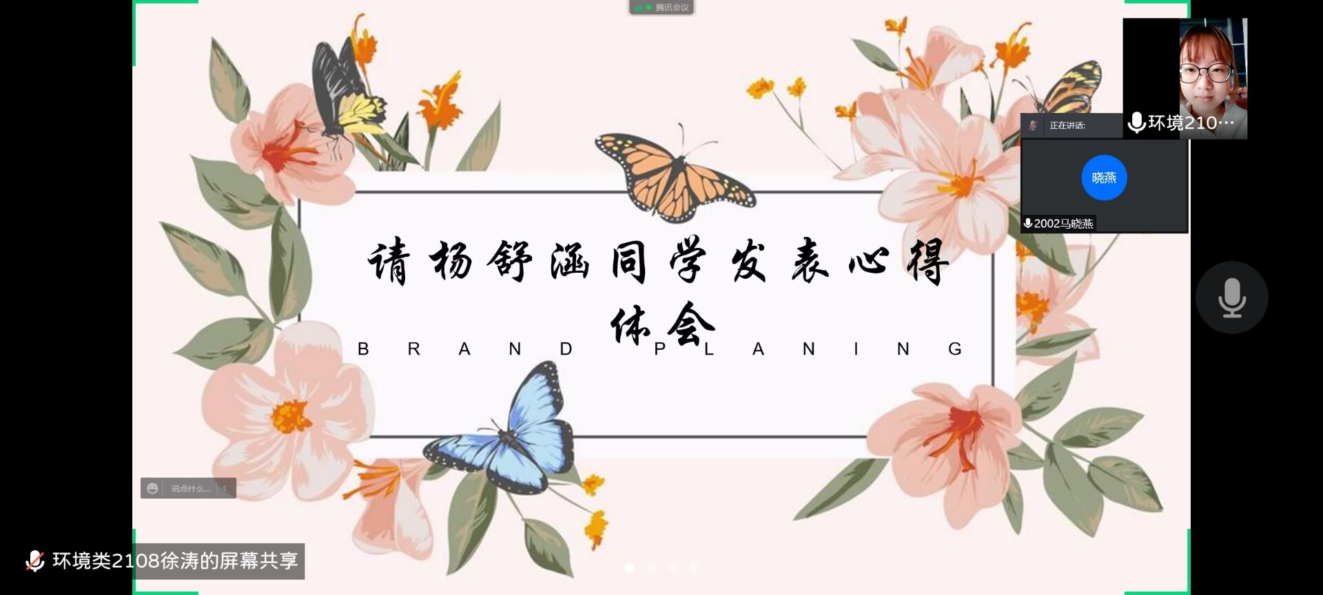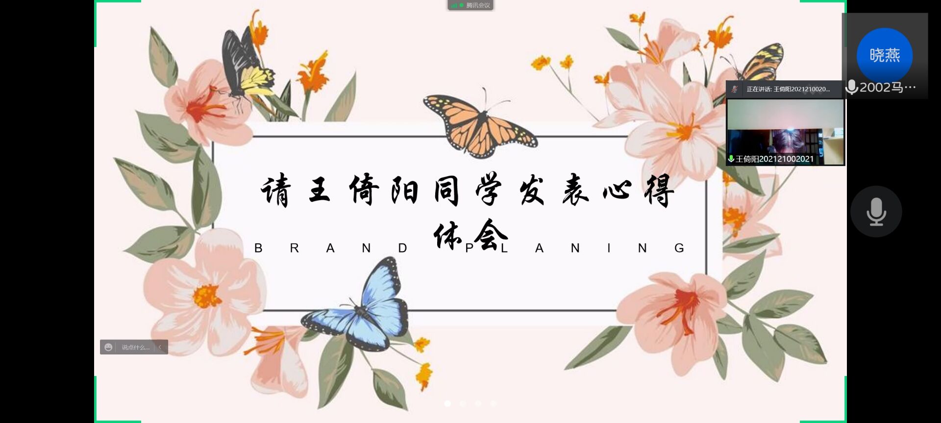 部分参会同学依次进行学习感受分享,其中领学人马晓燕同学向大家分享了她对本书的体会,她号召青年学生们向书中模范看齐,学习他们不懈奋斗、脚踏实地的优秀品质。会议最后,由王倚阳同学做最后总结,他提出作为当代青年我们需以先进思想指导行动,坚定理想信念,并不断砥砺前行。