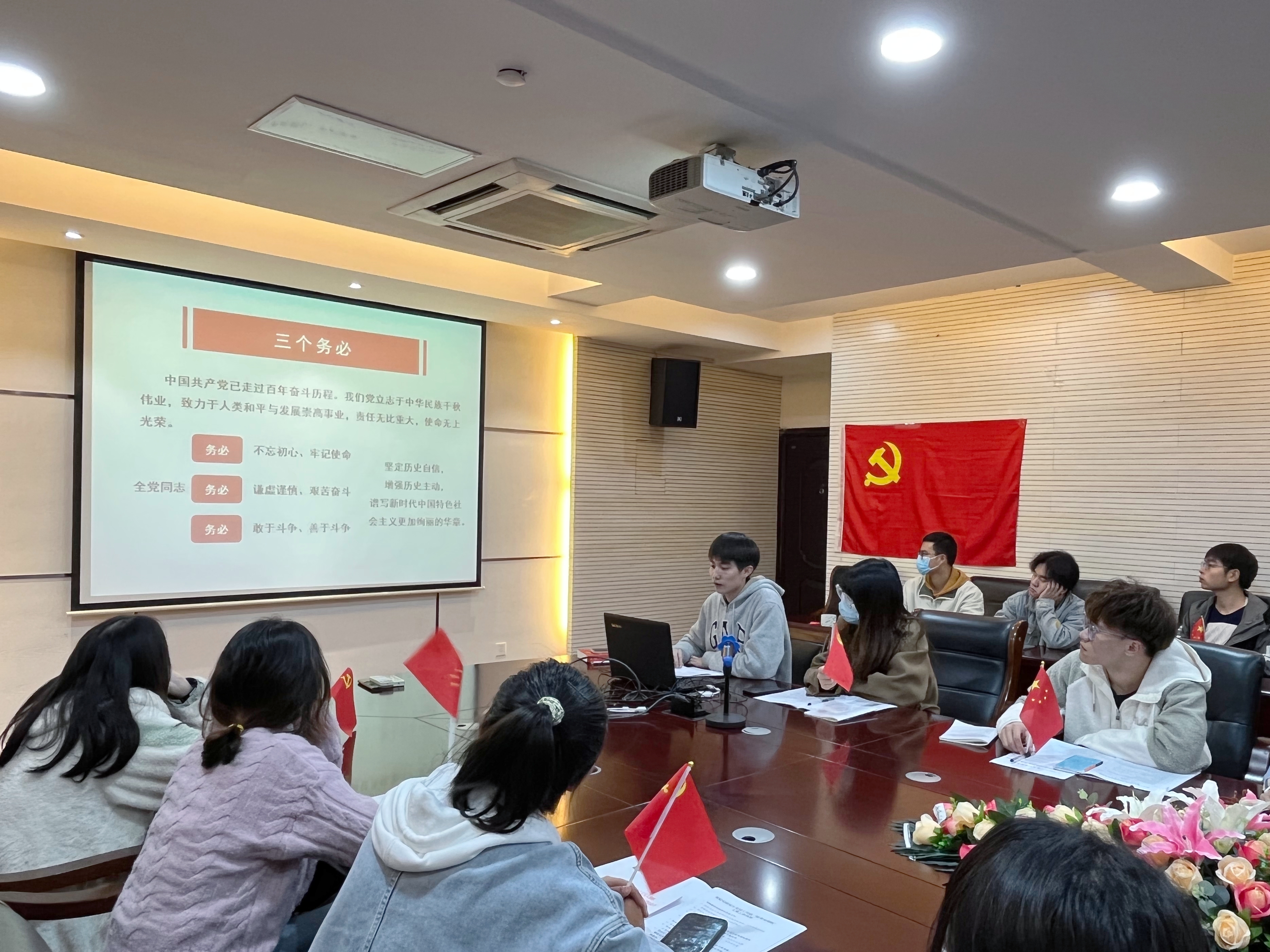 为深入学习贯彻党的二十大精神,引导青年党员将思想和行动统一到二十大精神上来,2022年11月23日晚上,太阳成tyc33455cc硕士研究生第一党支部在尚德楼B2-504会议室开展“学习二十大·奋进新时代”主题党日活动。活动由支部副书记王靖善主持。