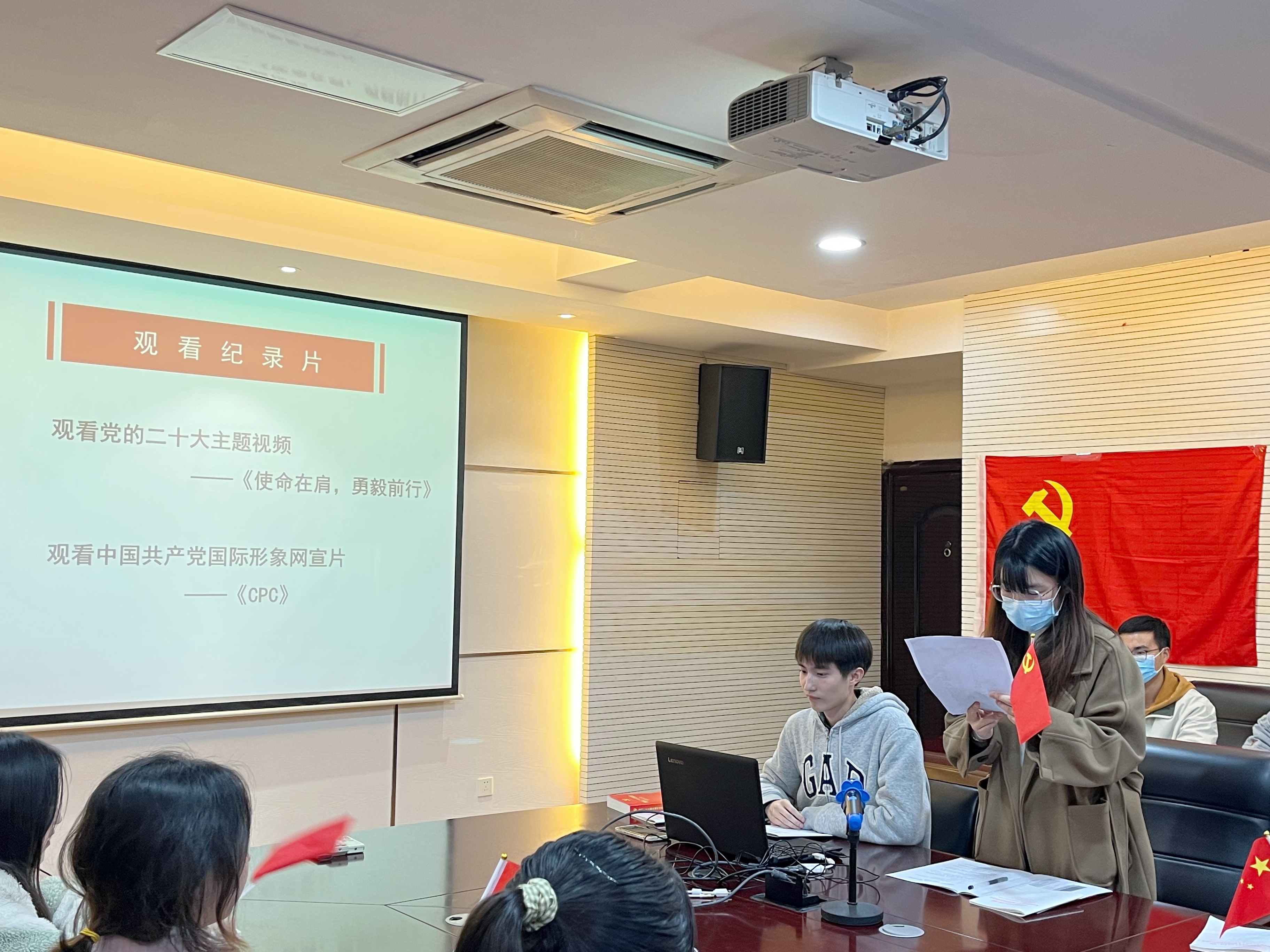 接着,观看了中国共产党国际形象网宣片——《CPC》和二十大专题纪录片。许千卉同学在观影后发言,她表示:“当代青年生逢其时,我们要牢记习总书记的期望与要求,心系家国事,肩抗国家责”。