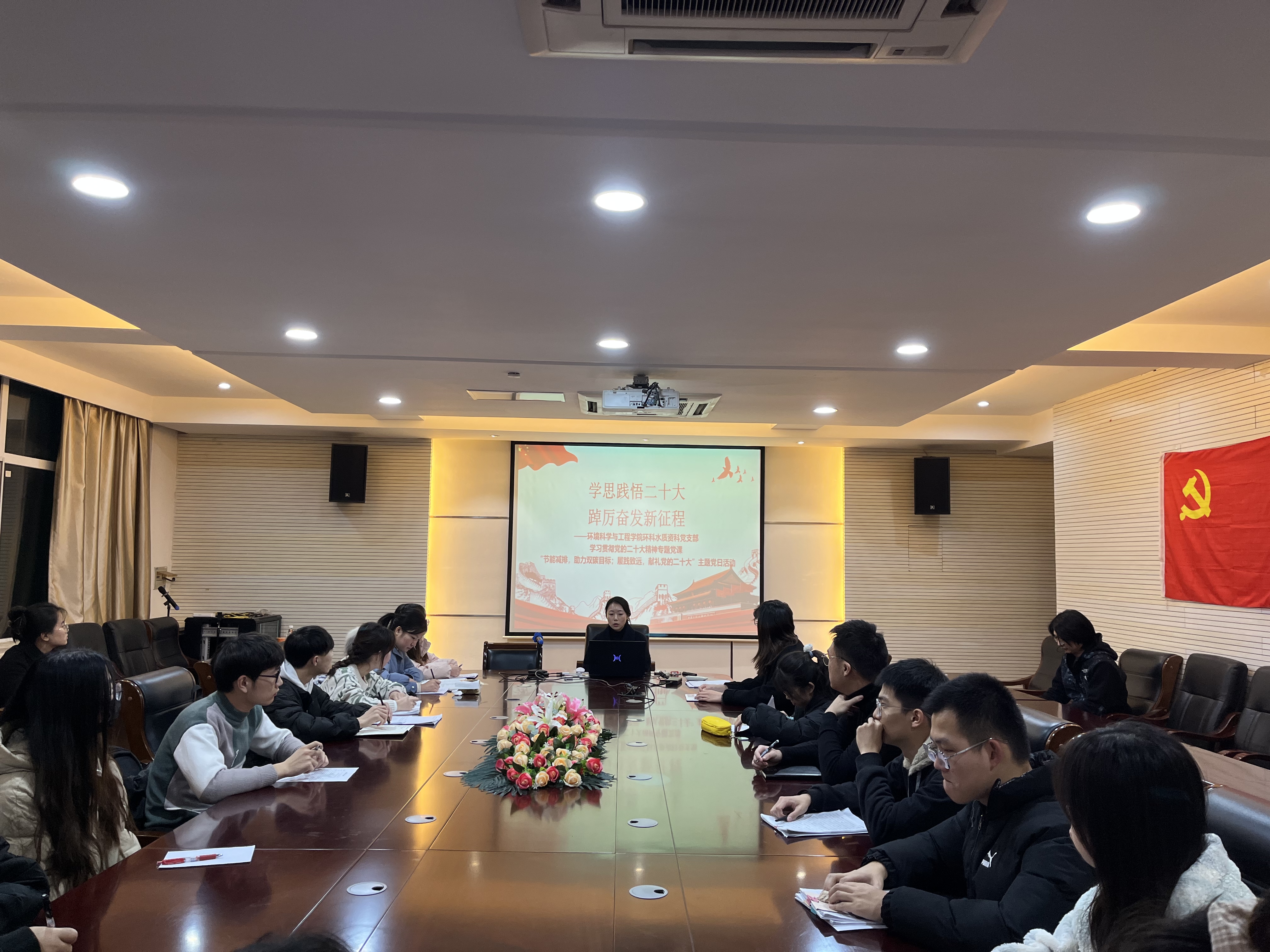12月1日晚上,为深入贯彻学习党的二十大精神,进一步提高全体学生党员的思想觉悟,太阳成tyc33455cc环科水质资科专业党支部开展“学思践悟二十大,踔厉奋发新征程”专题党课活动,环科水质资科专业党支部全体学生党员、部分入党积极分子参加活动,活动由党支部书记辅导员陈曹鎏老师主持。