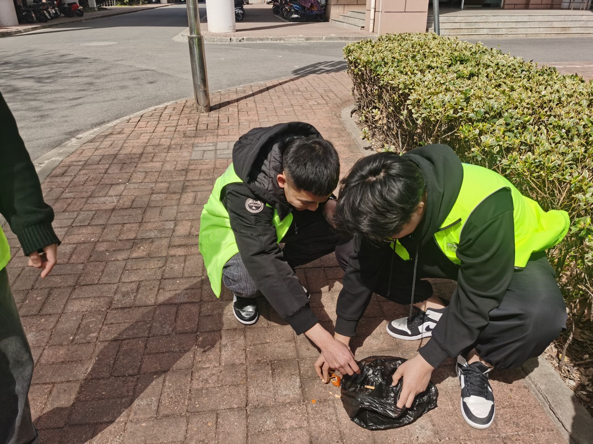 上午十点,志愿者们在东苑食堂门口集合,随后兵分三路,按照提前规划好的路线拾捡垃圾,维护校园环境。活动中,志愿者们发扬不怕脏,不怕累的精神,手拎着垃圾袋,弯腰捡起路边的废纸、塑料瓶、果皮、烟头等垃圾,并做好垃圾分类。下午四点,爱心公益服务队队长梁鑫面向全体志愿者发起了“学雷锋,树新风”为主题的在线小课堂,详细介绍了雷锋的生平事迹和雷锋精神的内涵,让雷锋精神深入人心。