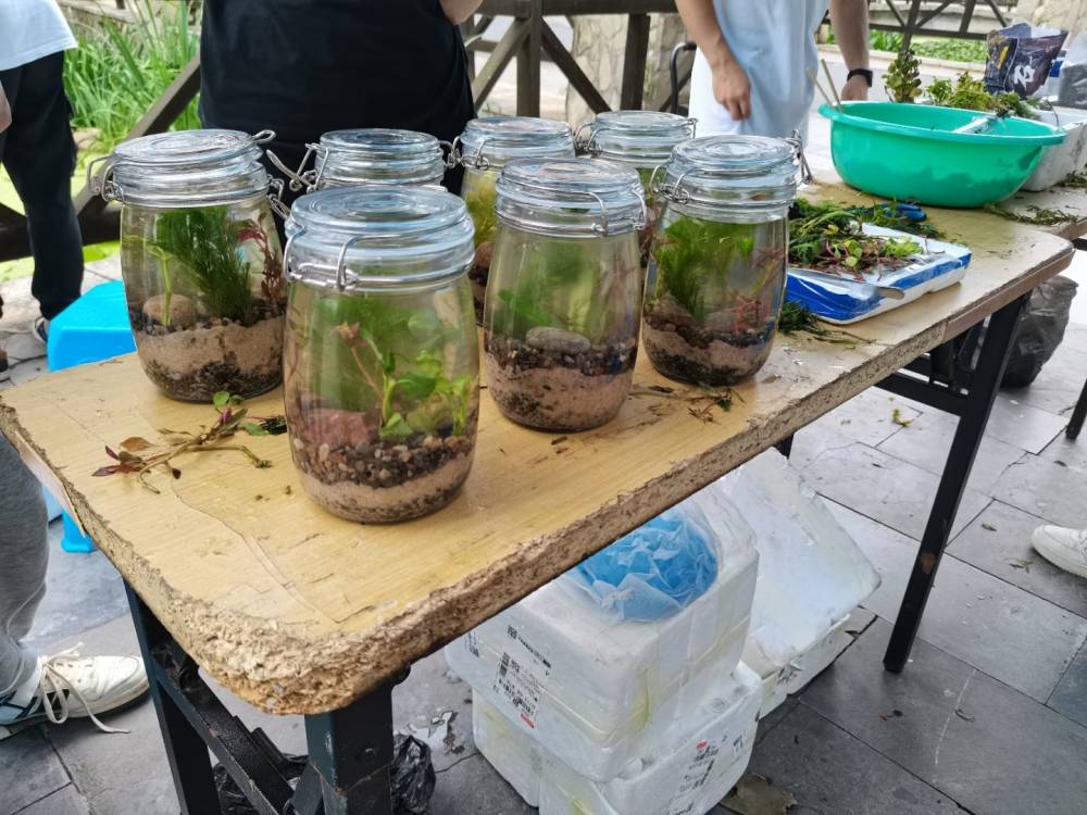 开动开始前,志愿者们通过太阳成tyc33455cc主页君等新媒体平台进行活动宣传,在活动过程中,同学们在志愿者的指导下将营养土颗粒、河沙层铺好,再种上形态各异的水草,最后为生态瓶注入湖水。同学们充分发挥想象力和创造力,构建自己的“瓶中天地”。活动结束后,参与的同学们纷纷表示:生态瓶的制作不仅增强了自己的动手动脑能力,而且增强了自己的环保意识。