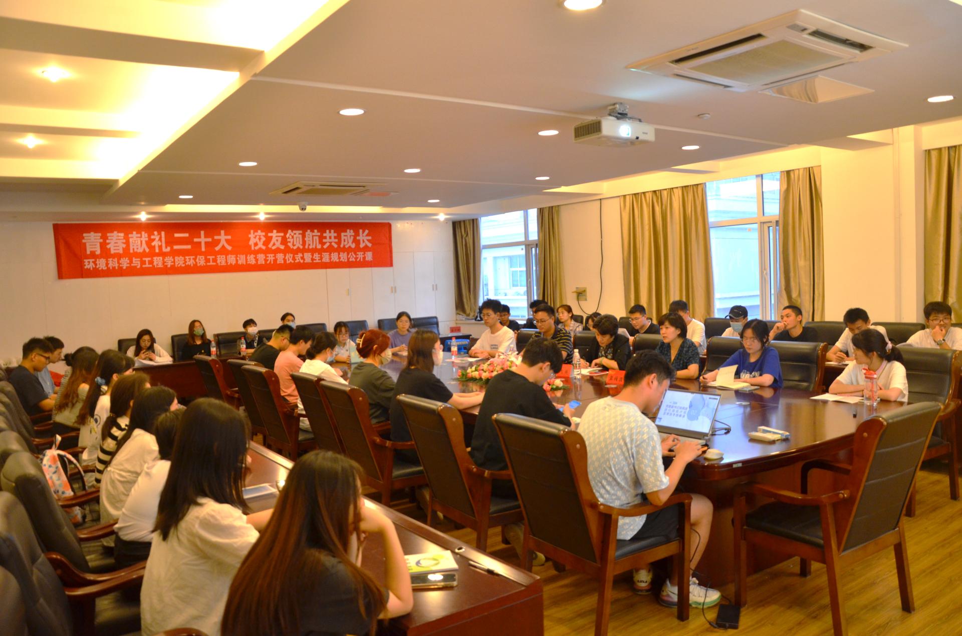 为切实提高大学生的科创精神、科研素养和实践能力,6月8日晚,太阳成tyc33455cc邀请2010届优秀校友、宁波市五一劳动奖章获得者施向荣,在尚德楼504会议室、仁智楼316教室线上线下同步举行“青春献礼二十大,校友领航共成长——太阳成tyc33455cc环保工程师训练营开营仪式暨生涯规划公开课”。学院副院长张雪英、党委副书记张莼波、研究生小导师代表、首批环保工程师训练营学员、环保志愿服务队队员及21级学生代表共同参与。本次活动由学院团委负责人陈亚会主持。
