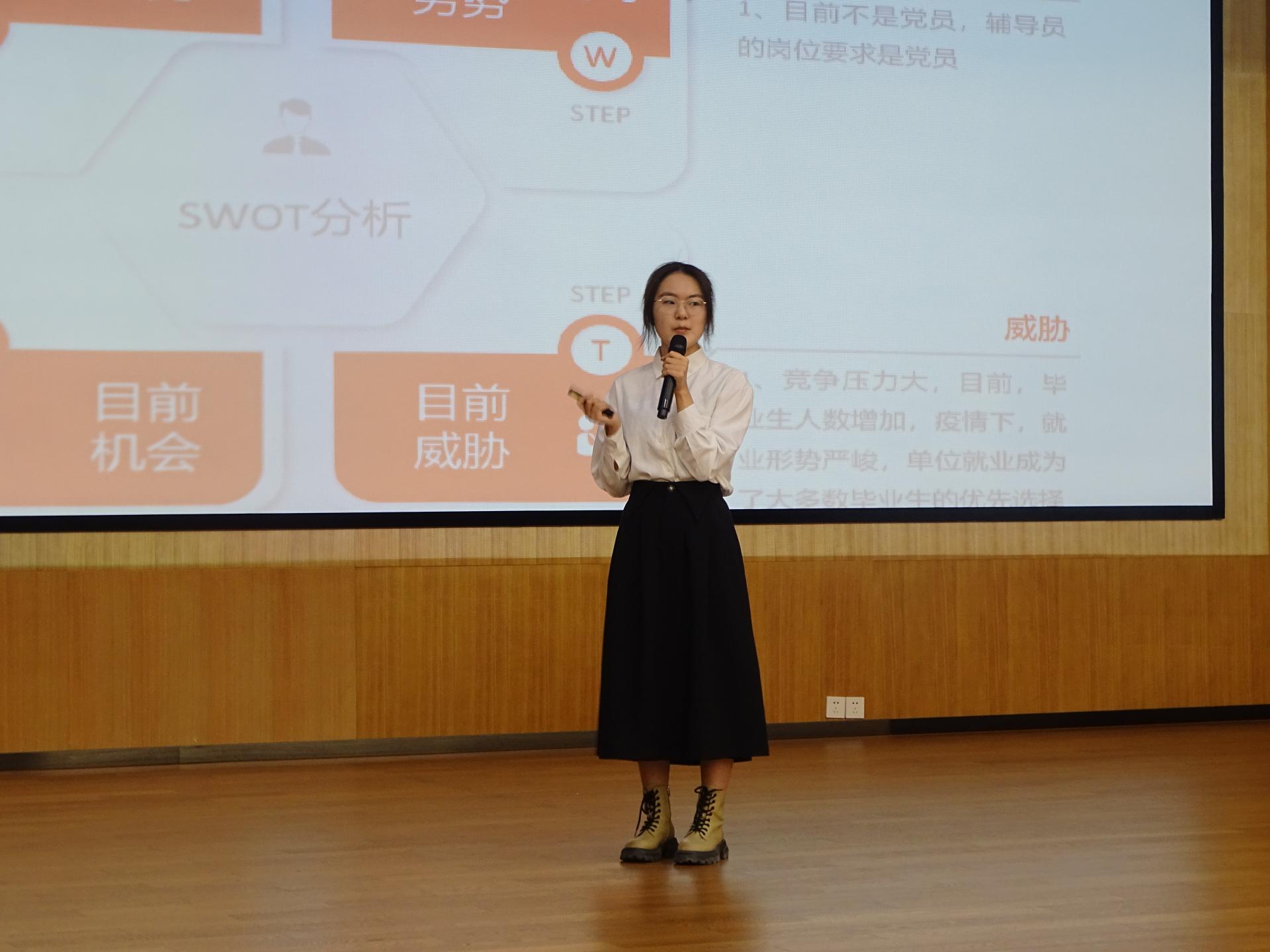 比赛中,选手们逐个上台分别进行两分钟自我展示及五分钟结构化面试,他们沉着应对,尽情展现自己的风彩,出色的表现时常引起热烈的掌声,获得了评委老师们的肯定。在点评环节,梅红源老师从选手的舞台站位、PPT细节、答题思路等方面为本次比赛进行了精彩点评,他肯定了同学们在面试细节方面的“小巧思”,同时也鼓励同学们继续努力,不断提高自身综合素质。