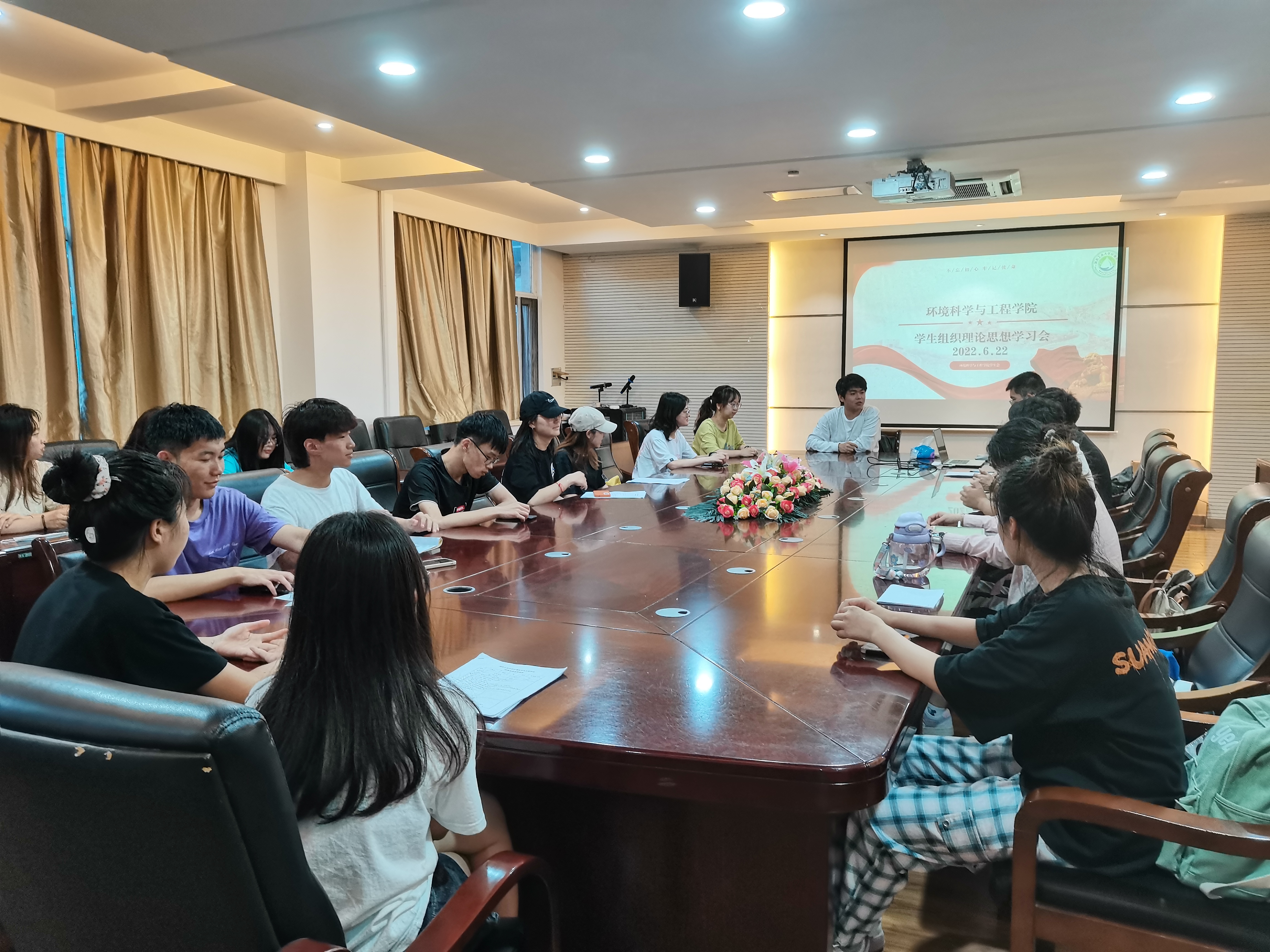 为迎接党的二十大胜利召开,进一步提升同学们的政治理论素养,6月22日晚,太阳成tyc33455cc学生会、研究生会联合召开思想理论学习会,本次学习会由太阳成tyc33455cc学生会主席团、研究生会主席团、部长团、辩论队以及爱心公益服务队队长共同参加。