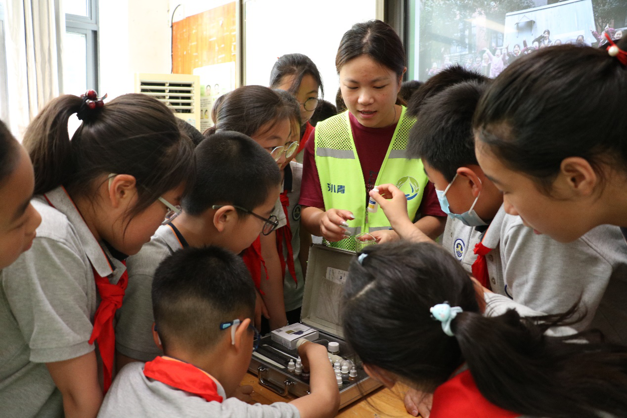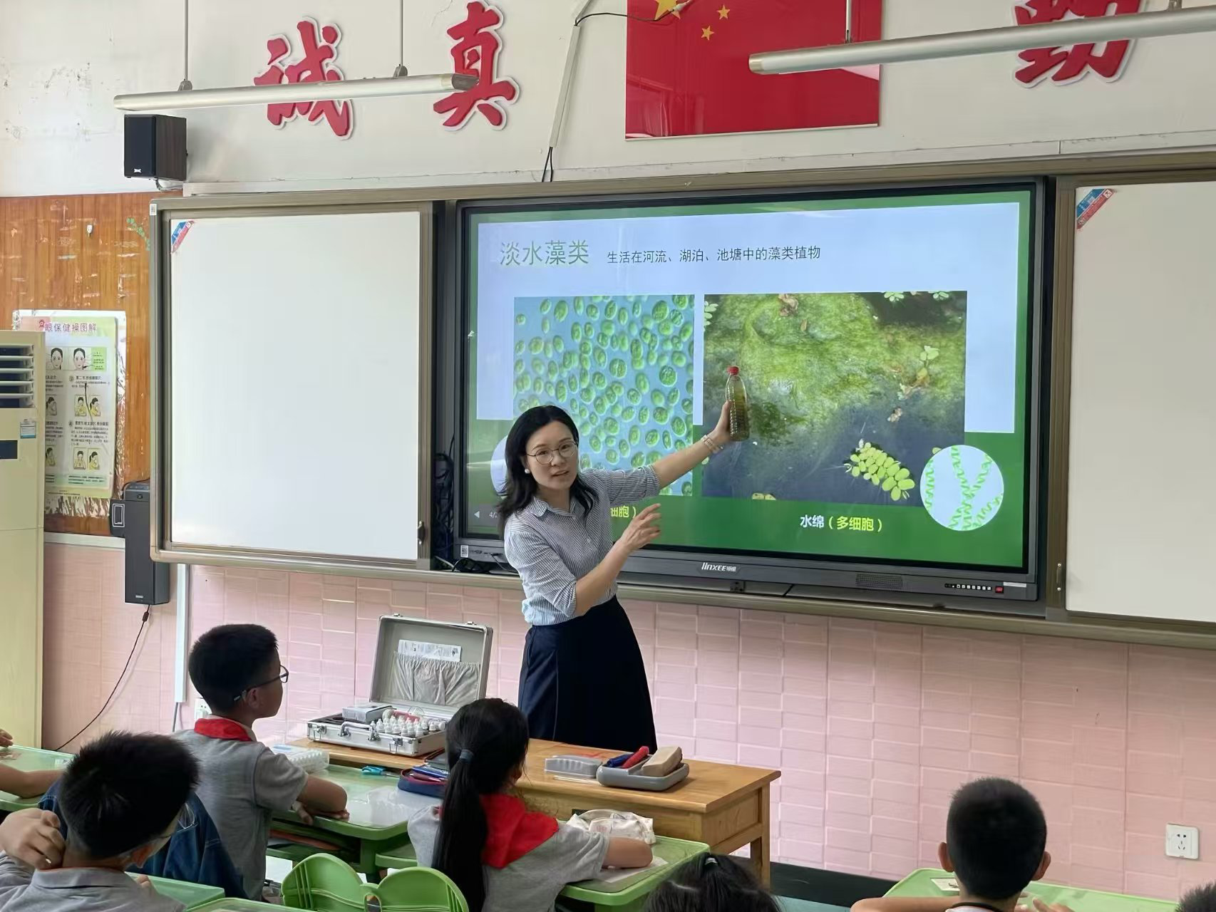 5月22日,在第25个国际生物多样性日到来之际,tyc33455cc太阳成tyc33455cc高燕老师带领“河小青”生态环境实践服务队走进金陵小学,为同学们带来了一场生动有趣的水生生物多样性科普课堂。