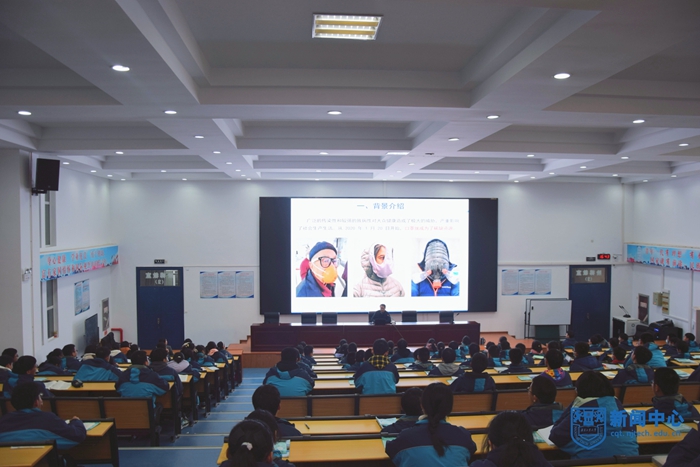 仪式后,仲副院长以“同心抗疫,科技担当”为题做专题讲座,并赠送了“膜法口罩”及《中学生职业生涯规划指南》。生动形象的案例和科技环保知识,不仅展现了我校科研人员的创新精神和使命担当,更激发了同学们努力学习、敢于创新的斗志。