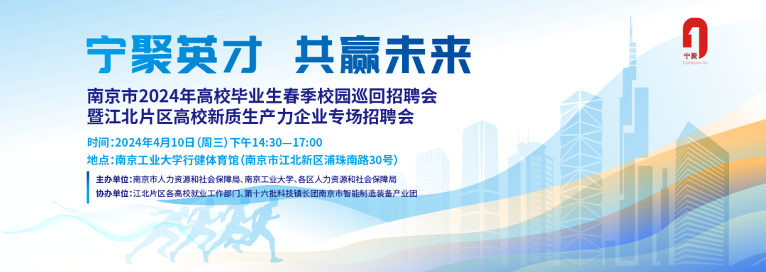 春招正当时,就业在金陵。为促进高校毕业生等重点群体高质量充分就业,4月10日下午,我校联合南京市、区人社部门及江北片区高校,共同举办“宁聚英才 共赢未来”南京市2024年高校毕业生春季校园巡回招聘会暨江北片区高校新质生产力企业专场招聘会。
