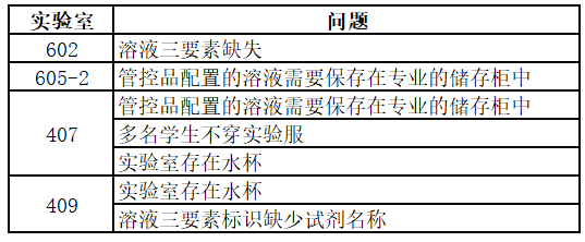 特别注意,上周学校督导检查我院时提出要求,管控药品配置的溶液使用完后必须放入专业的储存柜,不可以与普通溶液混放着在实验台上。请各实验室按照学校督导的要求执行。