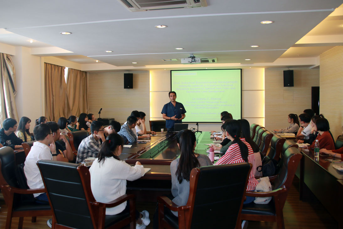 Alexious博士主要介绍了工业环境管理的新概念和新技术。重点解读了欧洲、亚洲的环境管理政策,并列举了多起案例来揭示当今社会所面临的环保问题以及如何利用恰当的管理方式解决这些问题。报告会后,Alexious博士预留了充分的时间与同学们进行交流,同学们积极参与,提出了诸如“发达国家通过将工厂转移到发展中国家,实现环境污染的转移,这是否对发展中国家不公平?”和“如何通过管理方式的改变实现垃圾分类和废物利用?”等问题。针对这些问题,Alexious博士与同学们进行了深入的交流和探讨。