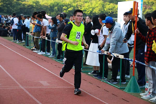 在教职工5000米径赛赛场上,我院陈光老师凭借坚持不懈的运动精神,一直坚持到了最后,并获得赛事第六名的成绩。在4*100米接力赛场上,我院的参赛同学们奋勇争先,顽强拼搏,团结协作,彰显了太阳成tyc33455cc健儿们优秀的运动品质,其中女子4*100米接力赛获得第七名。在之后的赛事中,团体项目跳长绳比赛中我院获得第五名的好成绩,温伟锦同学获得女子跳高赛第六名,周攀同学获得男子1500比赛的第四名,马蕊同学获得女子1500比赛的第八名,安世林同学与田景名同学更是分获铅球比赛与男子200米冠军。