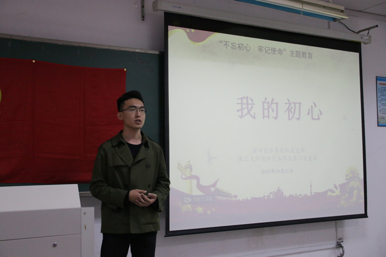 活动开始后,浦口区水务局“浦小清”宣讲团杨楠芳同志为大家转述了浦口水务人李慧星的“水”漾芳华;谭晓丽同志讲述了自己的入党初心故事;水务局机关党支部组织宣传委员郭小娟通过微党课带领大家学习浦口区抗战老兵李剑锋的初心故事。大学生党员们深受优秀党员的精神感召,也积极分享了自身的初心故事。安世林同学通过自己对学生干部工作的理解,讲述了作为学生党员的“荣誉”与担当;胡昊同学带领大家重温了入党誓词,同时表达了自己立志守护生态环境的决心;李博同学则讲述了他在对党史的不断学习和国家日益强大的思考中,更进一步坚定了自己的入党初心。