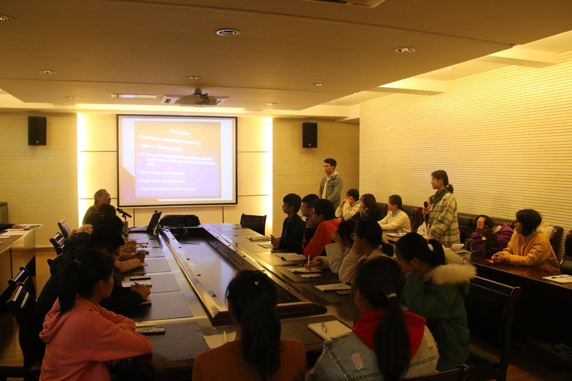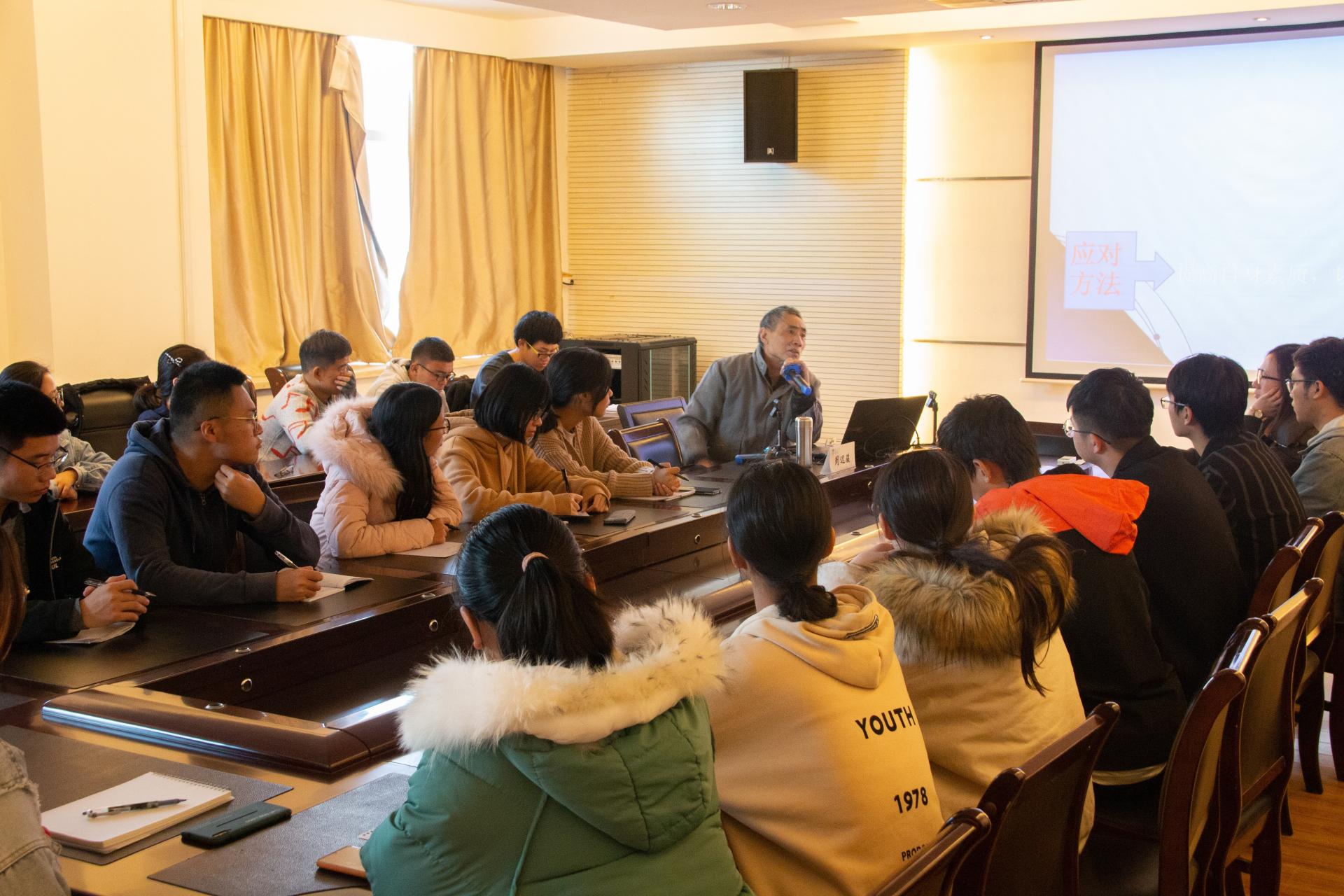 会议伊始,主持人戚旸老师致开场词并为参会新生介绍了主讲人周迟骏老师。周老师作为一名经验丰富的老教师,结合自身经历就新生如何快速适应大学生活等问题对大家进行了学习和生活上的引导。周迟骏老师指出,“只有适合自己的学校才是好学校”,他劝诫一些高考失利的同学不要灰心丧气,只有端正自身学习态度,才能够成功。此外,周迟骏老师还从处理人际关系“君子和而不同”等方面为大家阐述了恰当处理人际关系的方法,获得了大家的一致认可。“世界是你们的,你们是八九点钟的太阳”,周迟骏老师引用毛泽东同志的名言作为结语,表达了对大一新生们的真诚祝愿。会后,周迟骏老师还为个别同学解答考研乃至工作方面的许多疑惑。