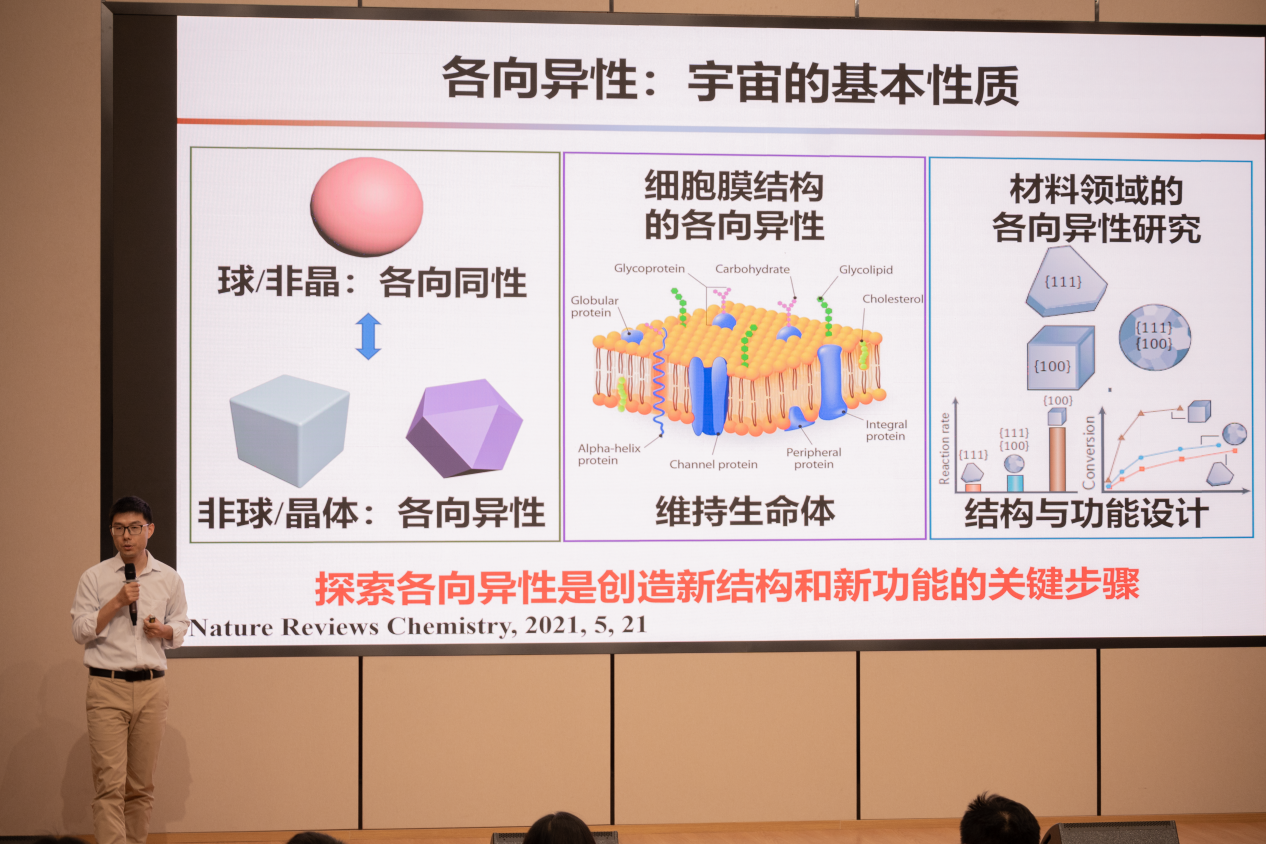 刘超研究员以“纳米MOF光/电催化分子转化”为学术报告主题,围绕纳米MOF中的各向异性工程问题,介绍了课题组近期在“纳米MOF光/电催化分子转化”方面的最新研究成果,包括ZnCo-ZIF和ZnCo-MTF空心纳米立方体等多种MOF材料,系统总结了课题组在精准调控MOF生长位点及空间分布方面的相关进展。