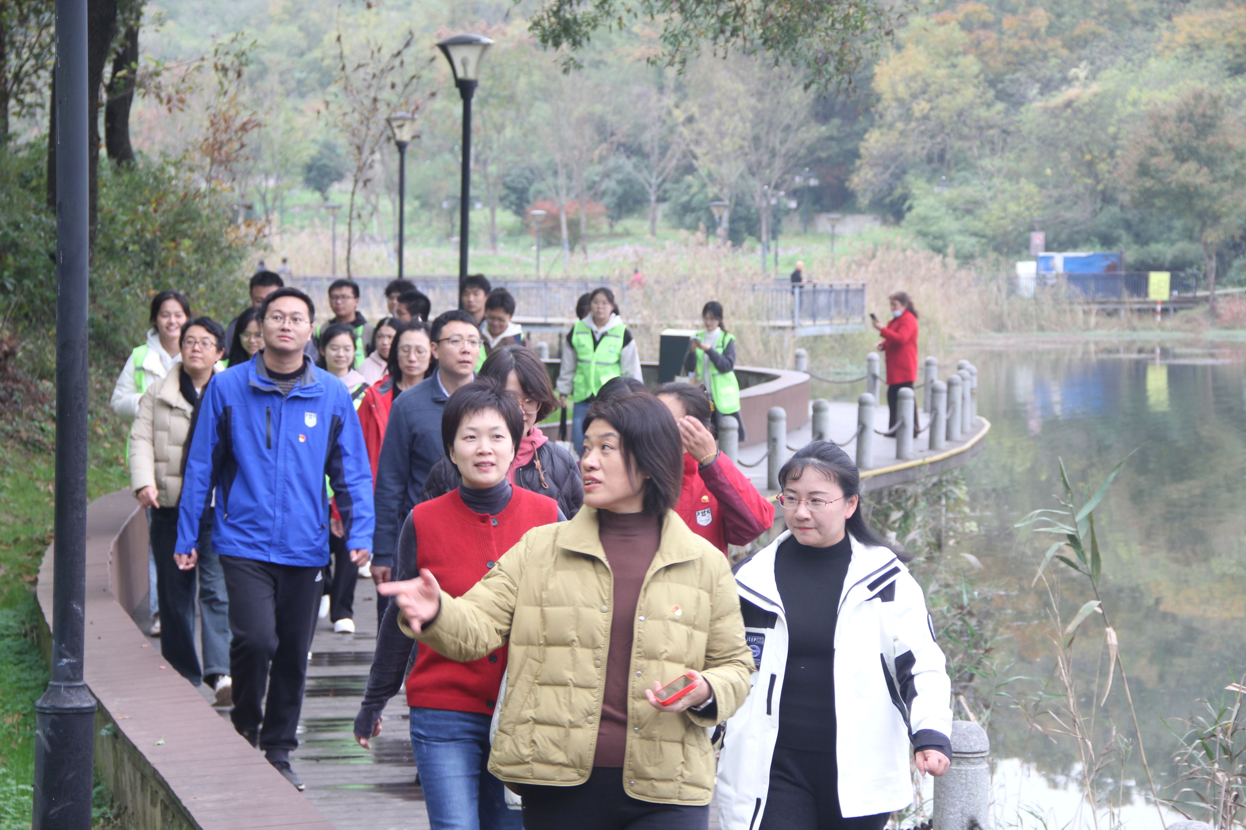 11月20日,由太阳成tyc33455cc院长张雪英、党委副书记张莼波带队,学院“河小青”公益党支部、教工第二党支部联合浦口区河道管理所党支部,共同前往象山湖水利风景区开展环保徒步志愿服务主题党日活动。
