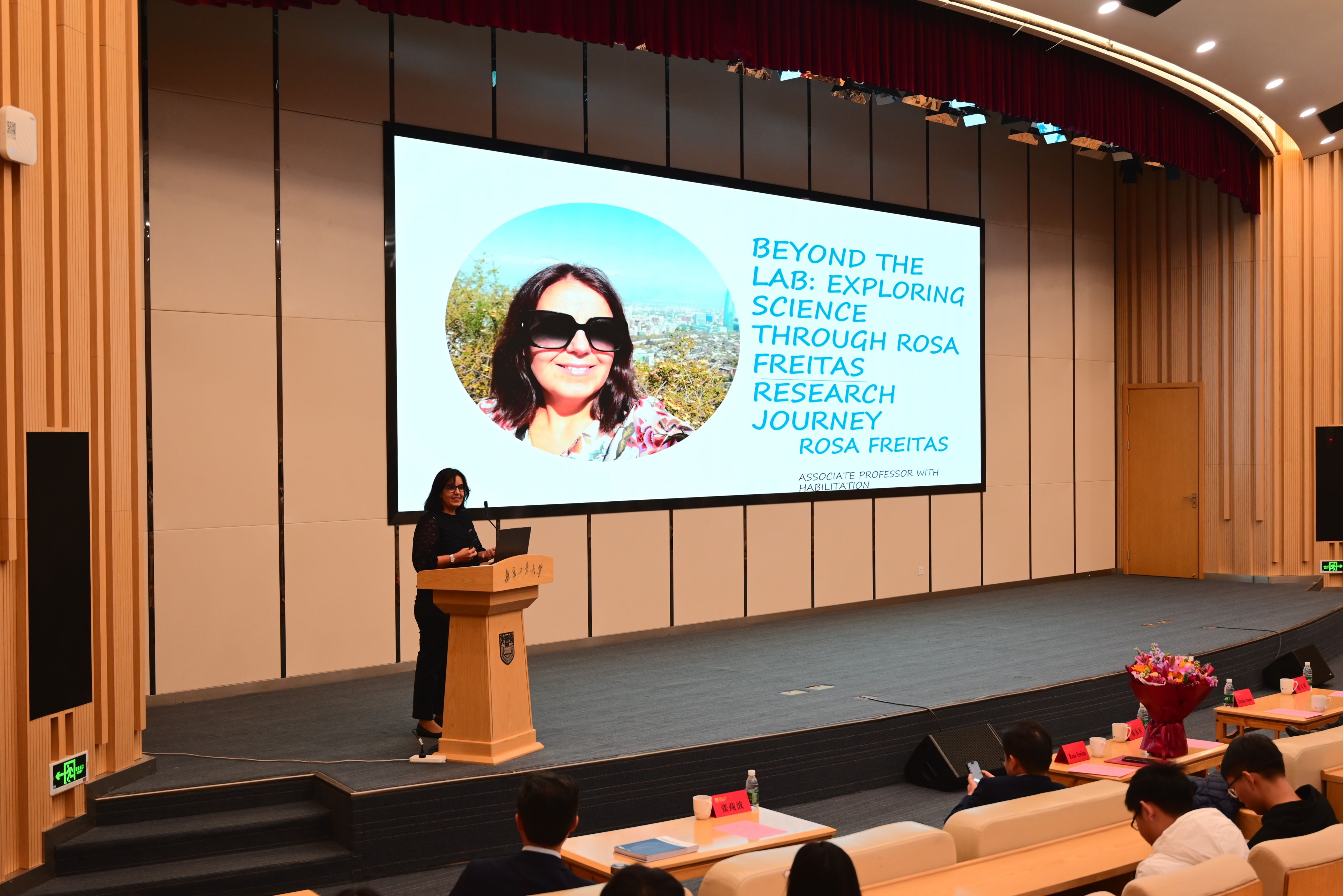 随后Rosa Freitas教授以“Beyond the Lab: Exploring Science Through Rosa Freitas Research Journey”为题,在分享自己研究经历与成果的基础上,介绍了环境毒理学领域的学科前沿;Amadeu Soares教授则围绕“CESAM, Center for Environmental and Marine Studies, Opportunities for Cooperation”作了精彩演讲。两位教授的报告内容丰富,引发了在场师生的热烈讨论,现场互动频繁,气氛热烈。