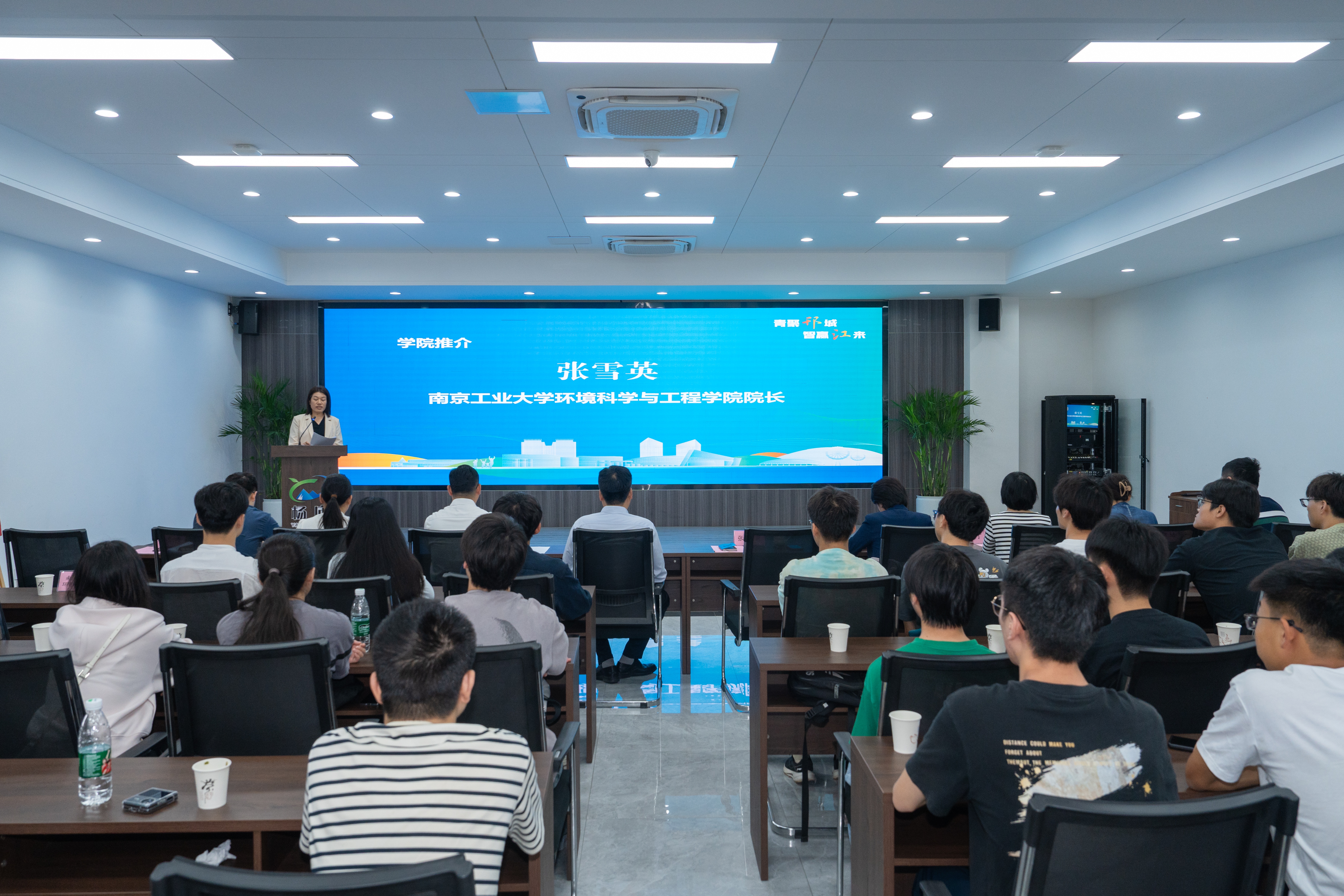 在人才产业交流对接会上,杜垒介绍了杨庙镇与产业园的基本情况,并向师生们发出“来邗邀约”;区高层次人才创新创业促进中心副主任陈晨介绍了邗江区人才政策。张雪英介绍了学校学院发展历史与现状,并重点介绍了学院学科专业特色、产学研合作优势并回顾了与邗江区的合作基础,她指出双方合作是优势互补、共赢未来的重要契机,要共同打造人才引育新高地,构建“现象级”产学研共同体,服务区域绿色发展大局。此外,徐宽兴与团区委副书记陈尧为“邗江青年城市推荐官”颁发聘书,张莼波与杜垒共同为tyc33455cc—扬州环保科技产业园就业创业实习实践基地揭牌。