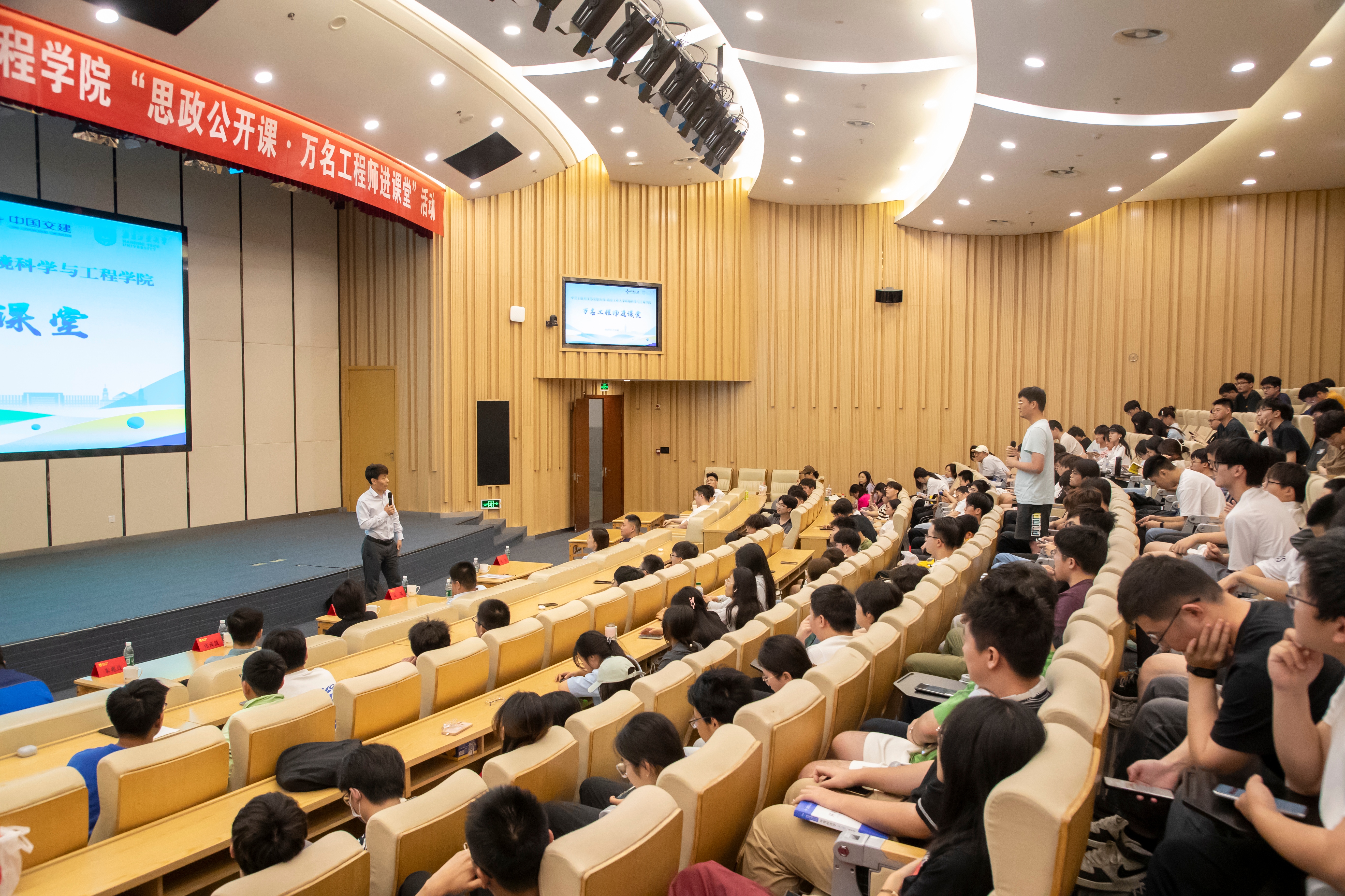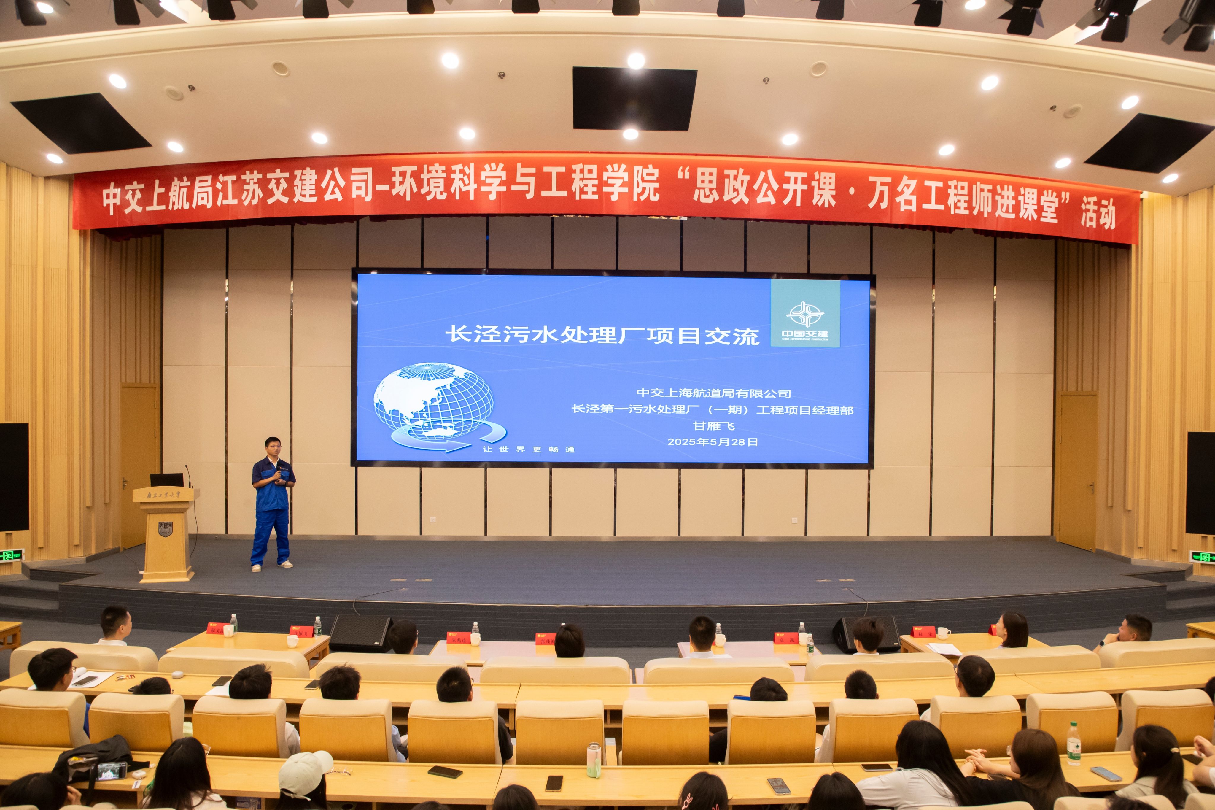 本次活动连接理论与实践、跨越课堂与职场、贯通高校育人使命与企业责任担当。中交上航局江苏交建公司团委书记权乐、长泾污水处理厂项目党支部书记甘雁飞、长江安庆段项目副经理沈阳,分别围绕中交上航局与超级工程、污水处理厂项目设计与施工、青年工程师职业成长等话题与观众分享。现场交流互动环节,龚明寄语同学们,要树立求职明确目标、认真学习专业知识、努力提升自身本领,勇于到基层一线磨砺实干本领,为中国式现代化建设挺膺担当、贡献力量。