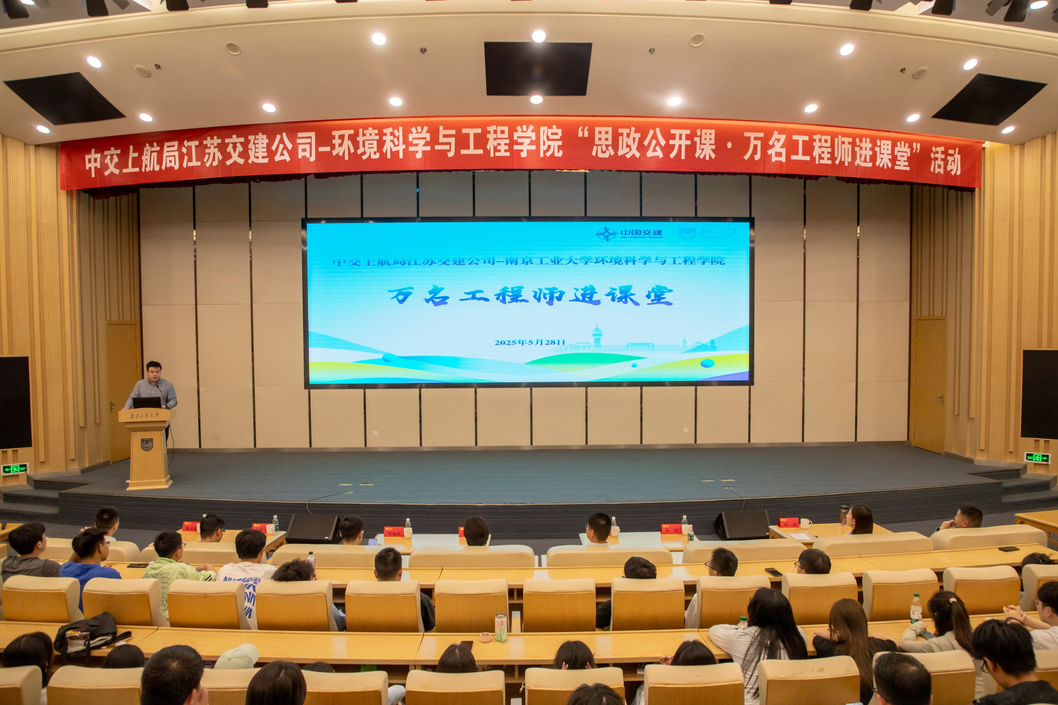 5月28日,“万名工程师进校园”活动在我校弘毅楼报告厅举行。活动由中交上航局江苏交建公司、太阳成tyc33455cc共同主办,中交上航局江苏交建公司党委副书记、纪委书记、工会主席龚明,太阳成tyc33455cc党委副书记张莼波,院长助理朱兆连出席活动。