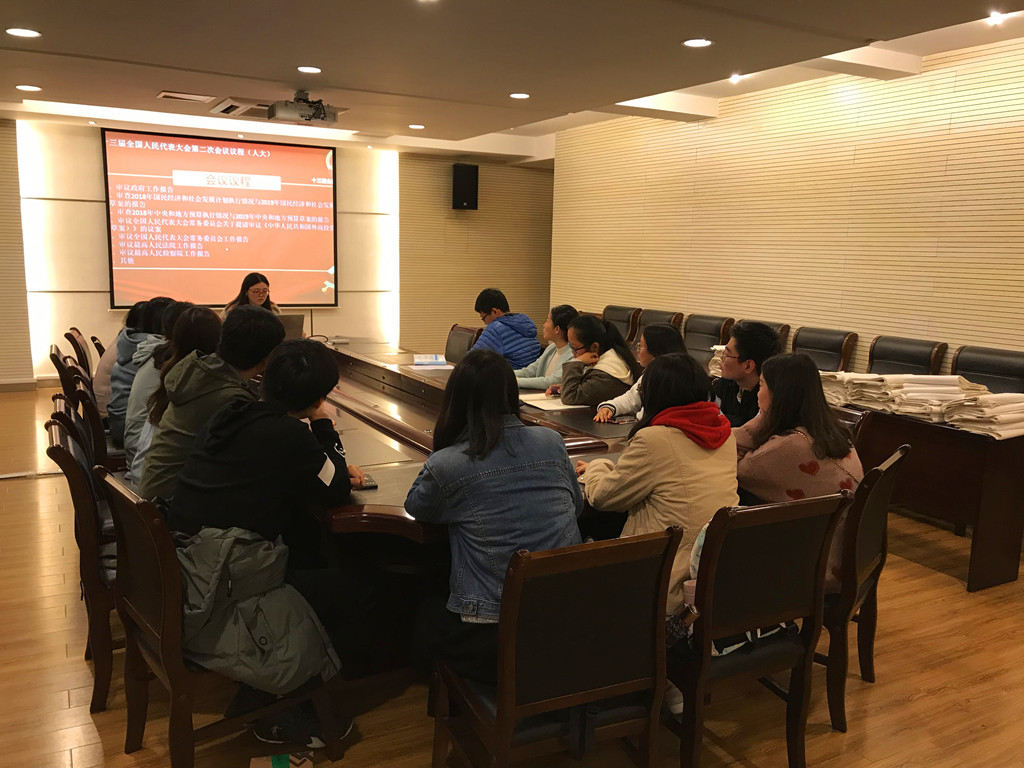 为深入学习“两会”精神,增强大学生的思想政治理论素养,2019年3月19日,太阳成tyc33455cc本科生第一党支部在学院504会议室由党支部书记苏心主持并组织开展了本支部的三月份组织生活会,本次会议的主题是“两会”精神集中学习研讨会。