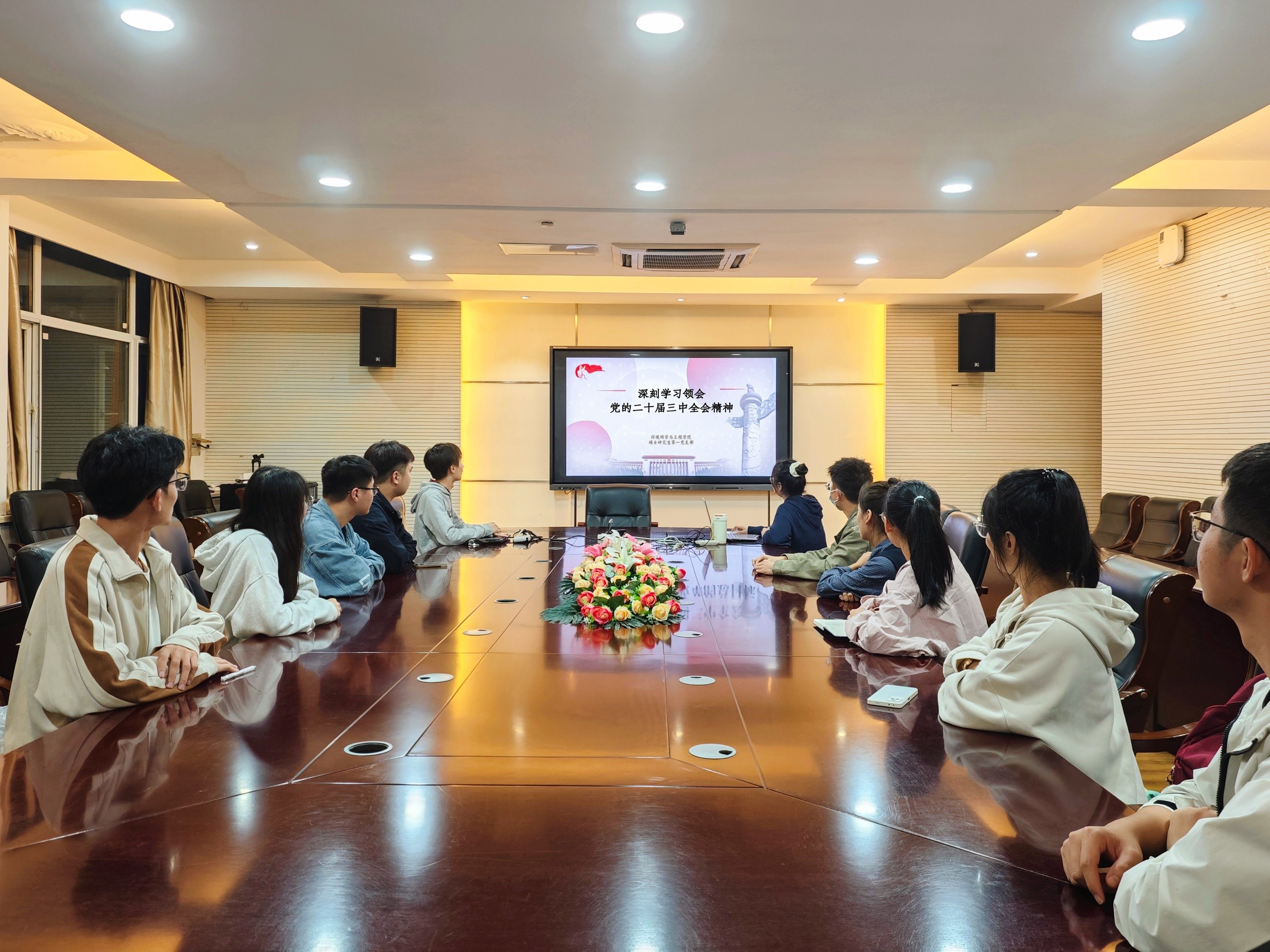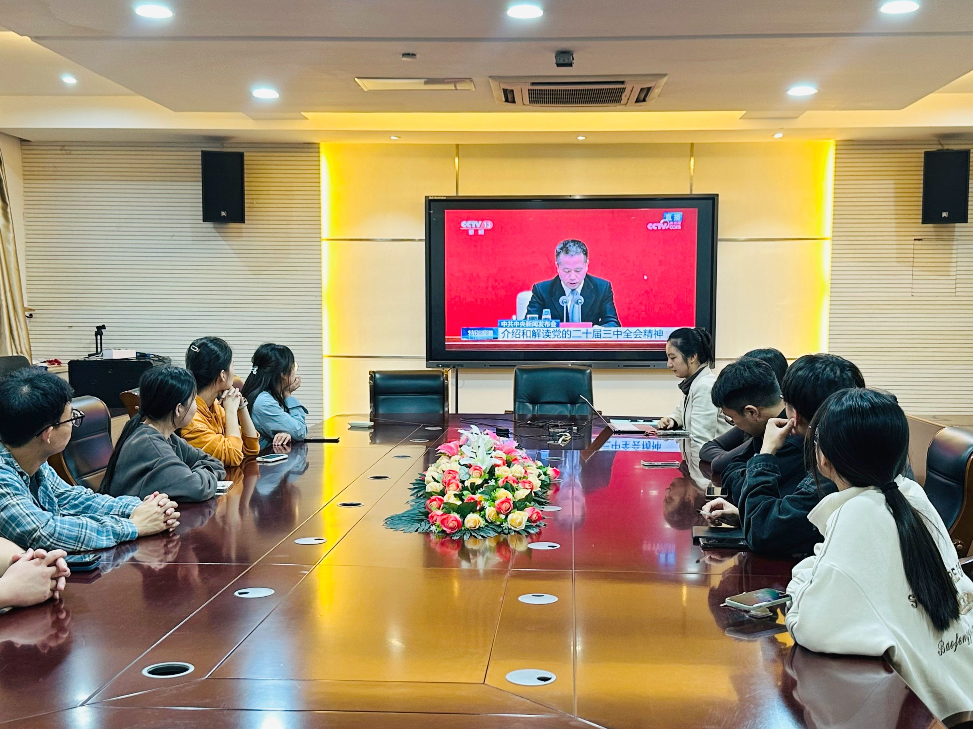 10月14日,学院硕士研究生第二党支部组织全体党员集中收看了中共中央解读党的二十届三中全会精神新闻发布会。观看结束后,支部书记沃文晴鼓励大家要将此次学习成果转化为实际行动,把党的二十届三中全会精神贯彻到日常学习科研中。同学们纷纷表示,作为新时代研究生,必须敢于创新、勇于担当,要将个人理想融入国家发展大局,书写无愧于时代的青春篇章。